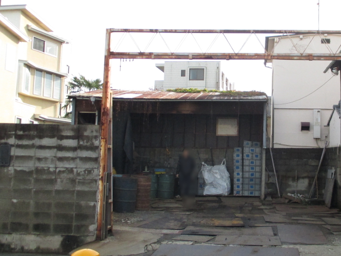 雨天のとき作業場に水たまりができるので鉄板を敷いて対応しているのですが、車両の出入れがしにくい、というお客様の問題を解決しました。