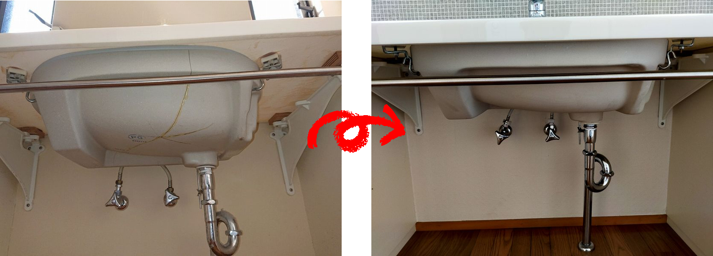 ・水廻りはシングルレバー混合栓の交換と割れた洗面ボウルの交換
